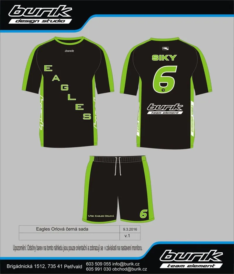 Oficiální hráčský dres. Do poznámek při objednávce prosím uveďte: ČÍSLO HRÁČE a JMENOVKU (přezdívku) na dres. Dostupnost volných hráčských čísel lze ověřit na emailové adrese eagles.orlova@gmail.com
